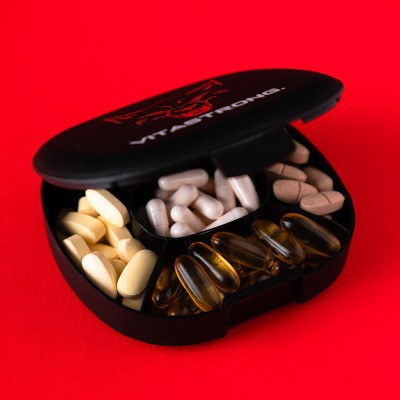 Il portapillole VitaStrong è la soluzione ideale per tutti gli sportivi che assumono diversi tipi di integratori in forma di pillole, vitamine, sali minerali, ecc.