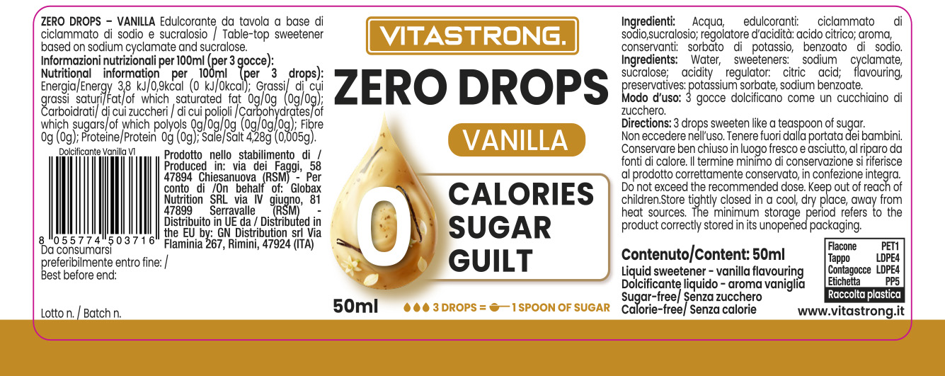 A differenza dei dolcificanti tradizionali, Zero Drops unisce massima dolcezza e zero calorie, senza retrogusto sgradevole e con un aroma alla vaniglia che valorizza ogni preparazione.