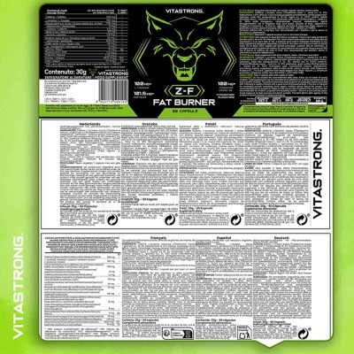Ingredienti:Caffeina, L-tirosina, cacao (Theobroma cacao L., semi) e.s. tit. 6% in teobromina e 1,5% in caffeina, involucro capsula (agente di rivestimento: idrossi-propil-metilcellulosa), matè (Ilex paraguariensis A. St.-Hil., foglie) e.s. tit. 3,6% in xantine, rodiola (Rhodiola rosea L., radice) e.s. tit. 3% in salidroside, caffè verde (Coffea arabica L., semi) e.s. tit. 50% in acido clorogenico, nicotinammide (niacina), maltodestrine, agenti antiagglomeranti: sali di magnesio degli acidi grassi, biossido di silicio, peperoncino (Capsicum frutescens L., frutto) e.s., Piperina da frutto di pepe nero (Piper nigrum L.), picolinato di cromo, ioduro di potassio.