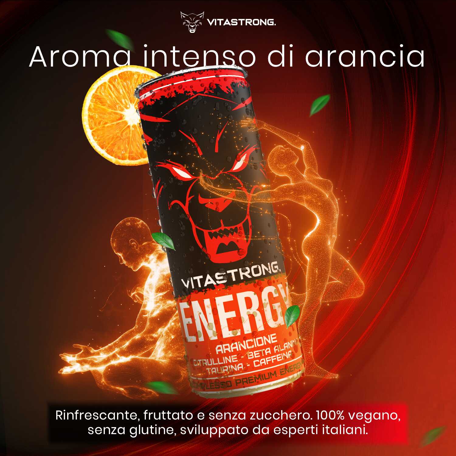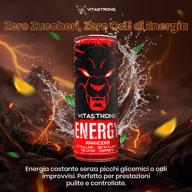 Vitastrong Energy è un integratore alimentare in lattina studiato per offrire energia equilibrata e sostenibile, ideale per chi cerca supporto fisico e mentale durante la giornata. Grazie alla sua formula innovativa, senza zuccheri aggiunti e con ingredienti avanzati come citrullina, beta-alanina, caffeina e vitamina B12, garantisce una carica costante e stabile, senza sbalzi glicemici o effetti indesiderati.