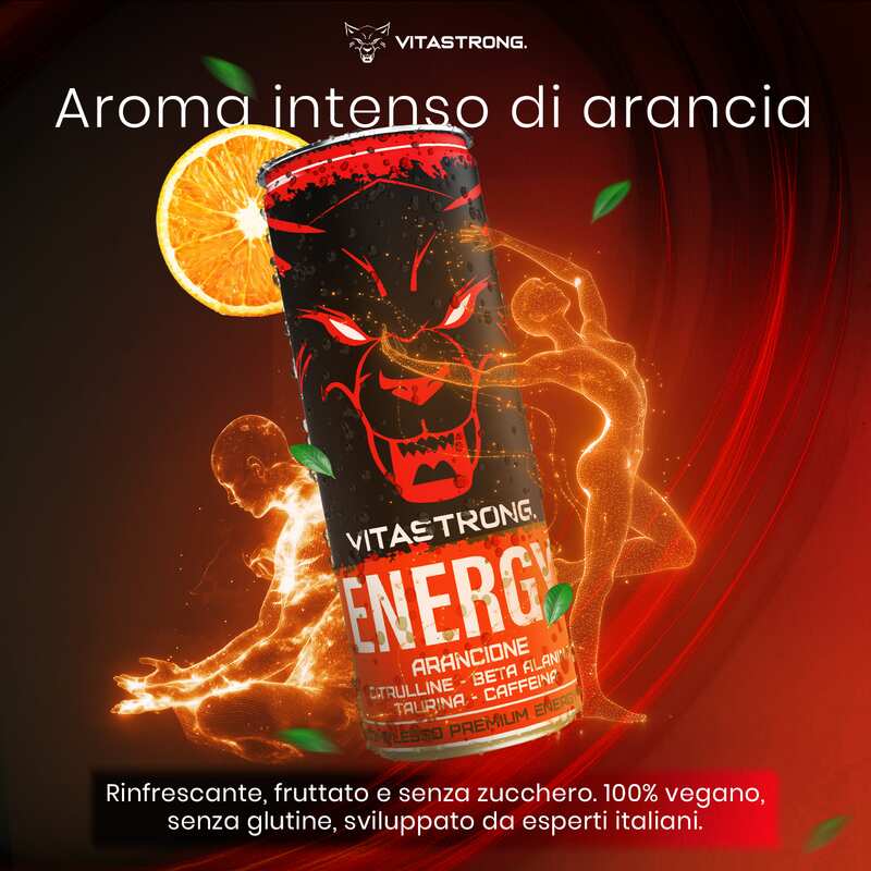 L’evoluzione dell’energia: zero zuccheri, zero tachicardia e addio agli sbalzi tipici di altre formule. Vitastrong Energy offre un’energia immediata e duratura, perfetta per affrontare le sfide più impegnative, dallo sport al lavoro, senza i crash a cui sei abituato. Disponibile nei gusti Arancia, Pesca, Berries e Tropical.