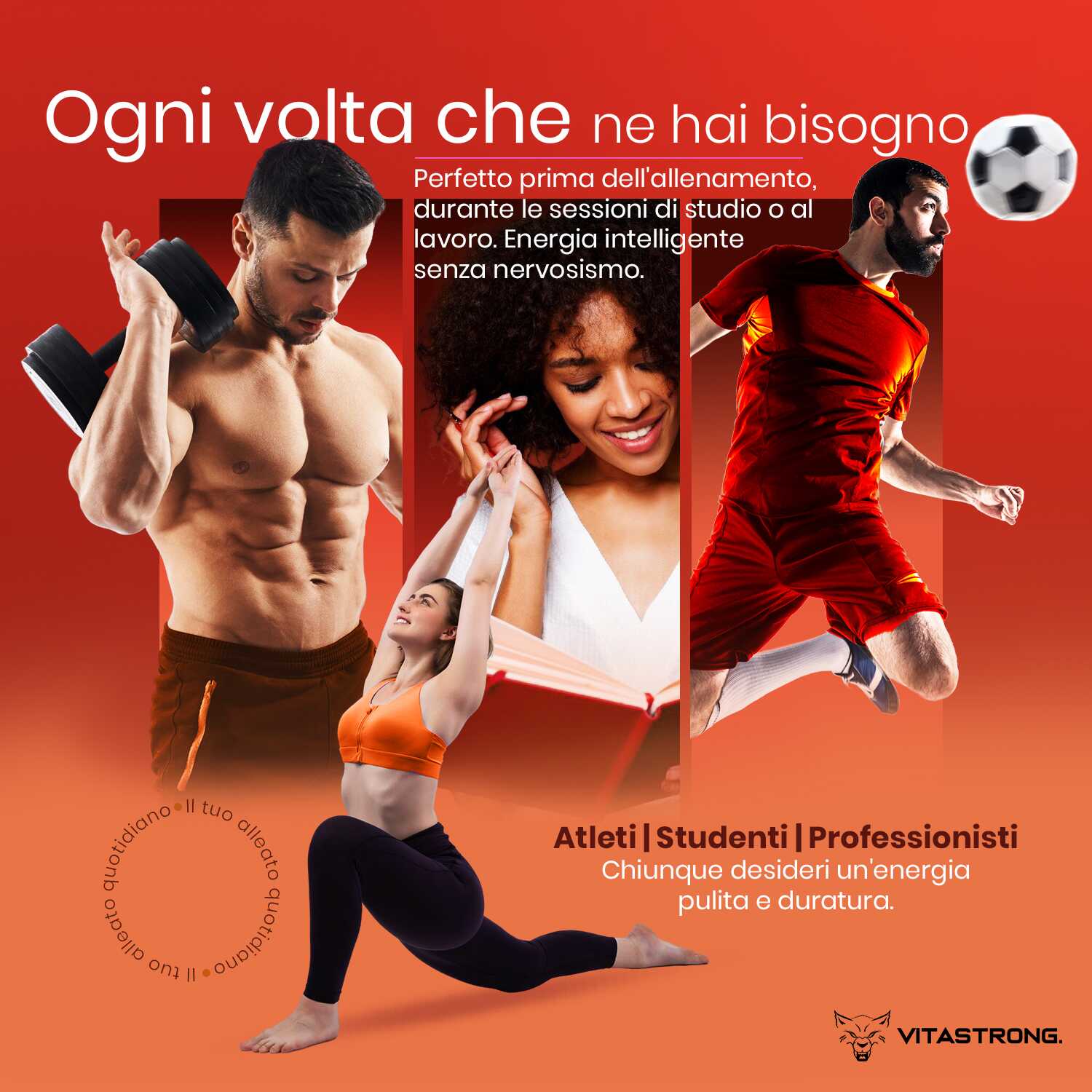 Perfetto per sportivi, studenti e professionisti, Vitastrong Energy sostiene le performance fisiche e mentali, aiutandoti a superare ogni sfida con energia e concentrazione.