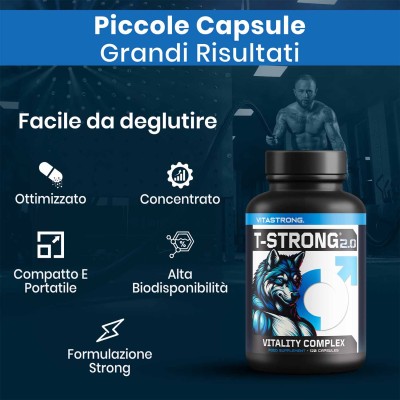 Il testosterone è un ormone steroideo essenziale per numerose funzioni fisiologiche maschili, tra cui il mantenimento della massa muscolare, la regolazione del metabolismo lipidico e la salute cardiovascolare. Con l’età, la sua produzione tende a diminuire, portando a una riduzione dell'energia, della resistenza fisica e della capacità di recupero. T-Strong 2.0 è stato formulato per supportare il corpo in questo processo, ottimizzando i livelli di energia e vitalità grazie a una combinazione di ingredienti naturali.