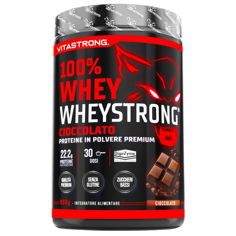 Wheystrong è un integratore proteico a base di proteine del siero di latte concentrate e proveniente da fornitori italiani, ad alta biodisponibilità, arricchito con DigeZyme®, un complesso enzimatico che migliora la digestione e l’assimilazione dei nutrienti.
