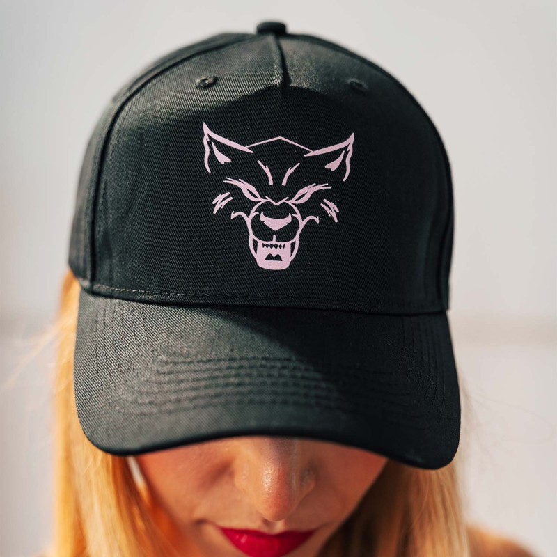 La visiera curva protegge dal sole e aggiunge un tocco sportivo al look, mentre il logo del lupo rosa sul frontale è la firma che esprime al meglio l’identità del brand: determinata, femminile, vincente.