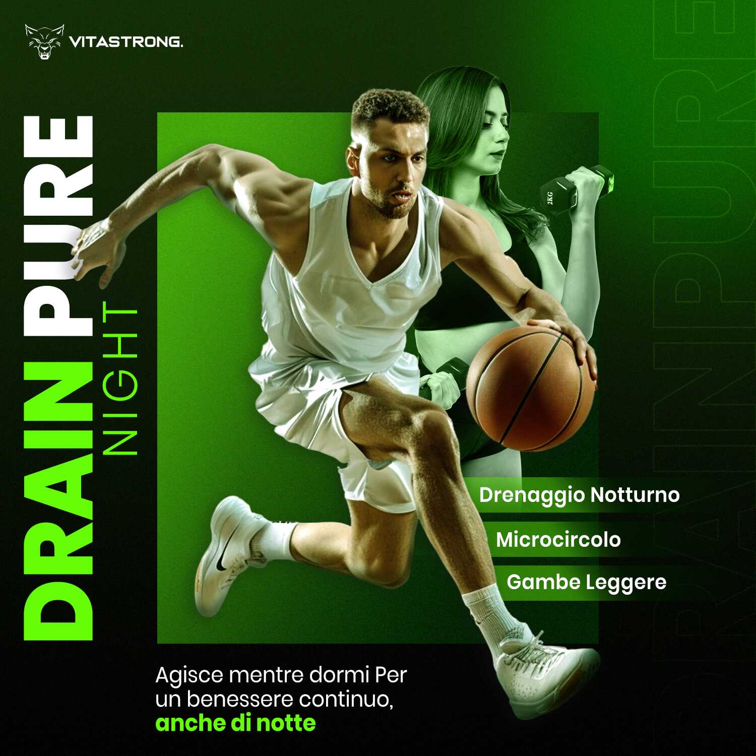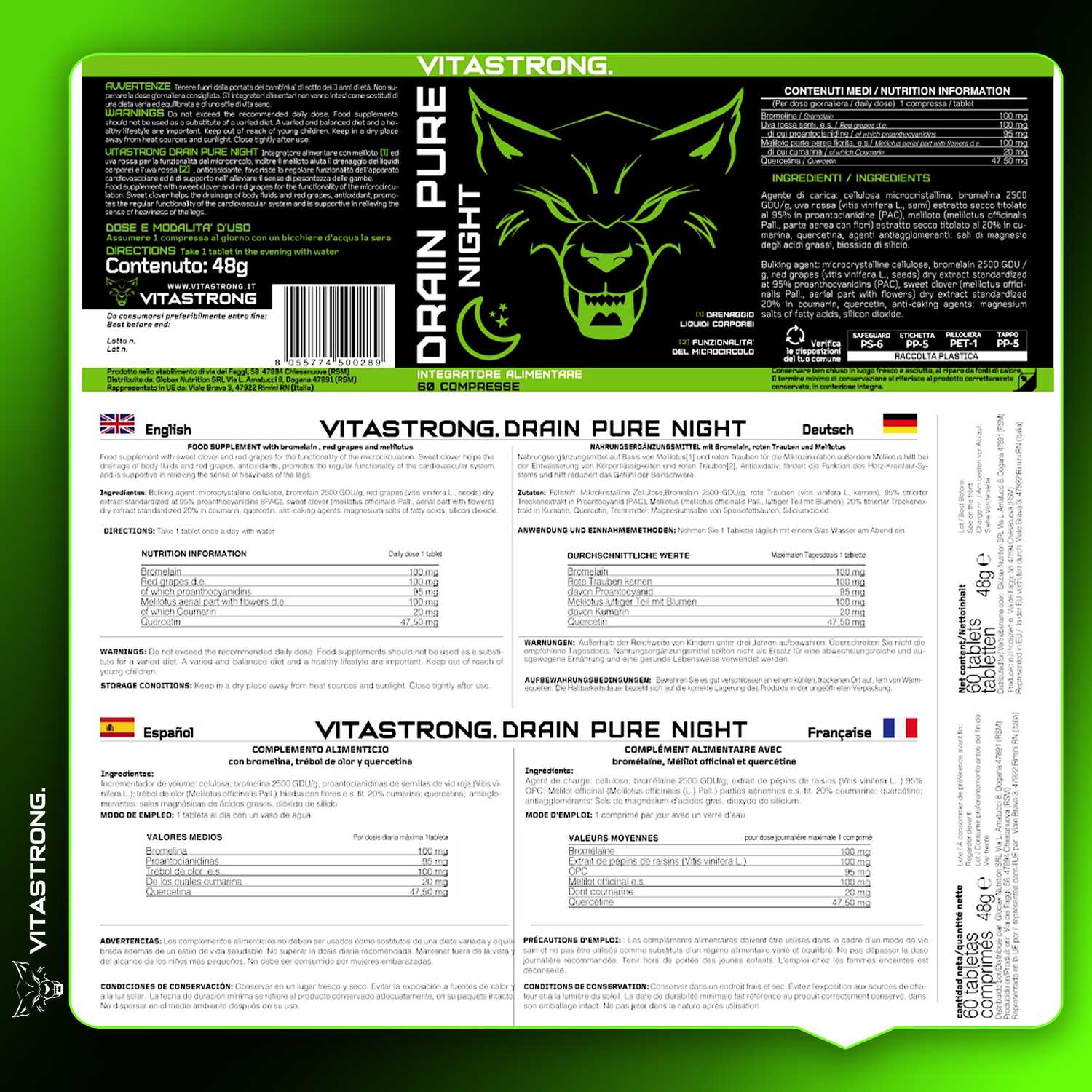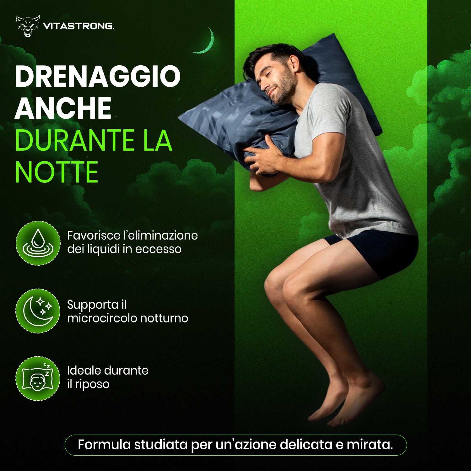Il prodotto è stato formulato per lavorare in modo sinergico con Vitastrong Drain Pure, completando il ciclo di drenaggio e depurazione nelle ore notturne, tuttavia può essere usato anche singolarmente. È ideale per chi soffre di ritenzione idrica o desidera un supporto specifico per migliorare il microcircolo e sentirsi più leggero al risveglio.