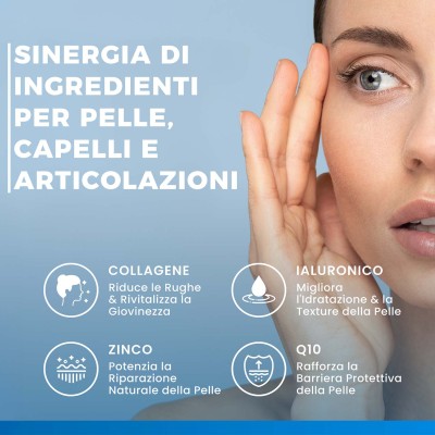 Il collagene è una proteina strutturale fondamentale per la pelle, le articolazioni e i tessuti connettivi. L’acido ialuronico, invece, aiuta a trattenere l’idratazione nei tessuti, migliorando elasticità e compattezza. La combinazione di questi elementi naturalmente presenti nell'organismo offre benefici anti-invecchiamento e di rigenerazione cellulare.