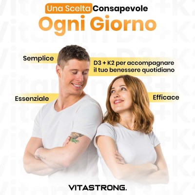 Questa sinergia rende Vitamin D3 + K2 una soluzione efficace per chi desidera un supporto totale alla struttura ossea, all’energia quotidiana e alle difese immunitarie.
