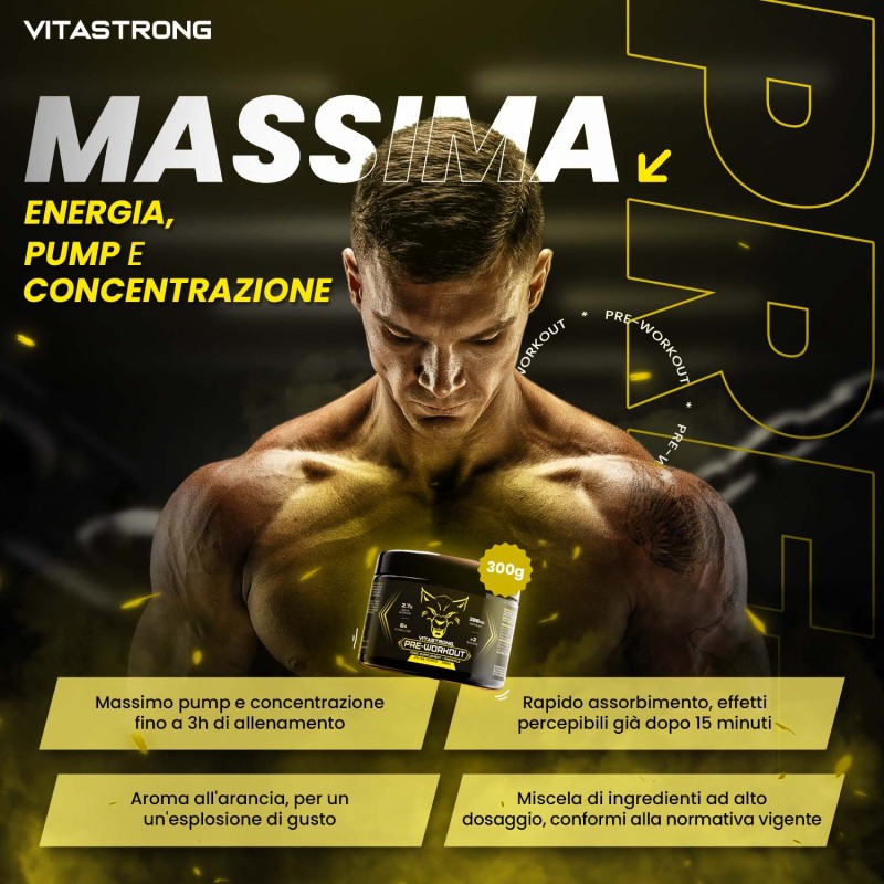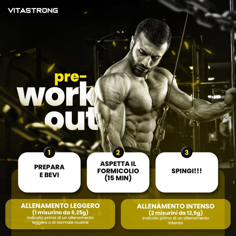 Il Preworkout di Vitastrong è il prodotto storico di Vitastrong, una formula potente progettata per trasformare ogni allenamento in una sfida vinta. Grazie alla combinazione di ingredienti chiave come L-citrullina, beta alanina, caffeina e AstraGin®, questo preworkout ti offre energia, resistenza e focus mentale senza paragoni.